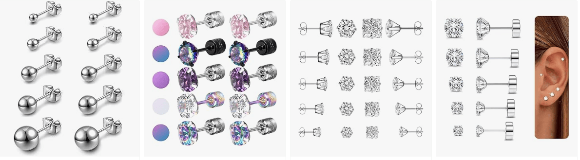 - Multiple Sizes: This set includes 5 pairs of silver stud earrings in sizes 3mm, 4mm, 5mm, 6mm, and 7mm. Perfect for various piercings such as lobe, tragus, cartilage, helix, etc.