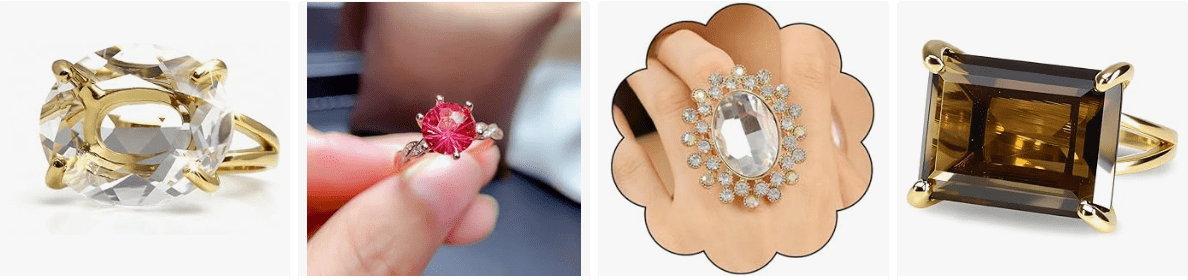 • Cubic Zirconia Rings for Women: These oval-shaped gemstone rings are a sight to behold, offering a unique and eye-catching design. The giant imitation diamond centerpiece instantly draws attention with its dazzling sparkle, making it a true showstopper.