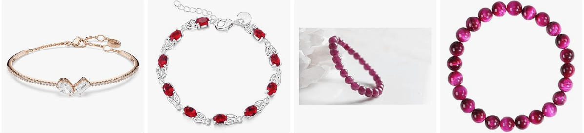 - Minimalist Bracelets: Simple ruby beads with subtle shine