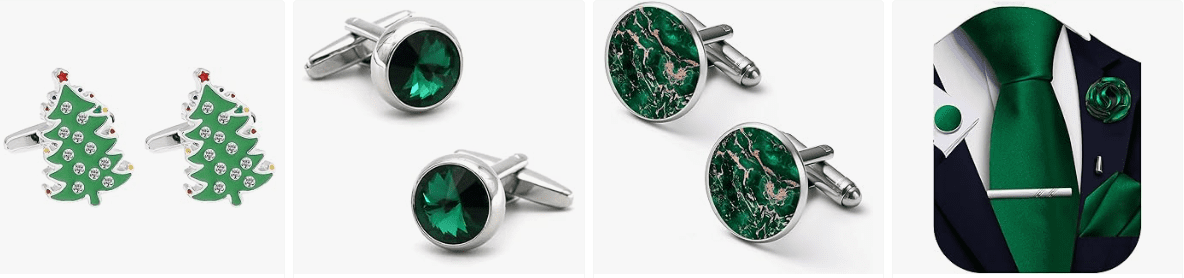 There’s something inherently powerful about statement accessories, and cufflinks top that list. These emerald cufflinks command attention without shouting for it. They blend modern minimalism with traditional charm, making them versatile for both business events and Christmas dinners.
