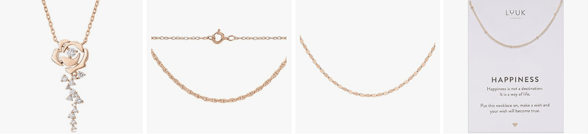- Rose gold chain necklaces for women and teenage girls made from 18ct rose gold plated 925 Sterling Silver