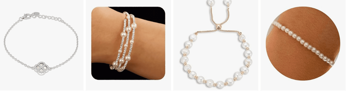 - Pearl Bracelet: This pearl bracelet set includes three different styles, including rhinestones and simulated pearls. It's versatile and practical, perfect for everyday wear.