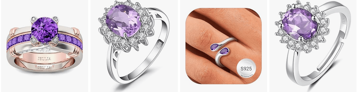 • √ STATEMENT ENGAGEMENT ANNIVERSARY RINGS FOR HER: If class is what you look to exhibit with your choice of outfit, then the Class Crown ring is what you need. This Princess Diana Kate Middleton ring with an exotic birthstone from genuine purple amethyst is your best bet at charming all those that admire you. The genuine purple amethyst ring will make all your outfit look elegant and classy.