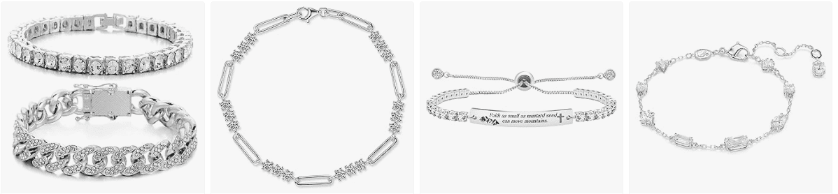 - Short silver bracelets for women and teenage girls. High-quality 925 sterling silver tennis bracelets for women designed by Diamond Treats. All our sterling silver jewellery for women is Rhodium plated adding a protective layer to reduce tarnishing and keep a long-lasting shine.