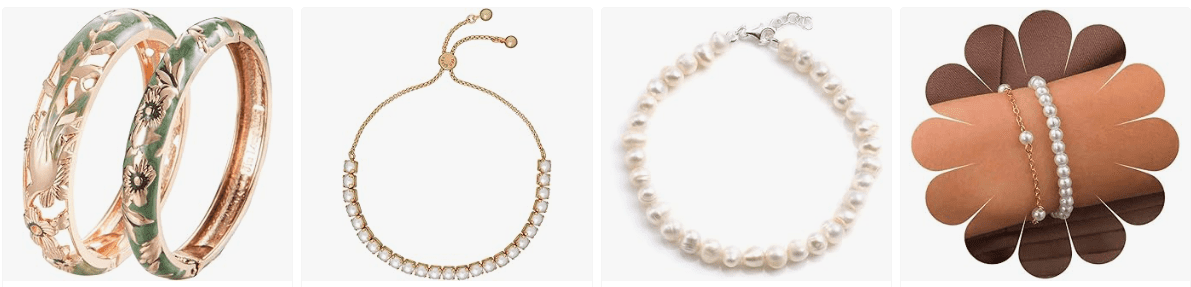 • Silver, gold and rose-gold bracelets offer numerous combinations including bangles, bracelets, charm bracelets, friendship and pearl bracelets