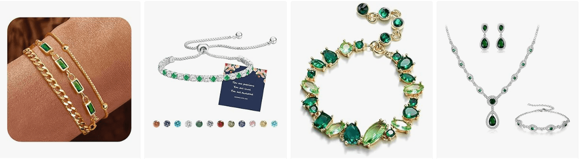 - [Versatile from Day to Night] Transition effortlessly from casual daytime looks to evening glamour. The emerald-green crystals evoke spring gardens, making this May birthstone bracelet a meaningful gift for birthdays, anniversaries, or Mother’s Day. Pair with minimalist rings or let it shine solo as a statement piece