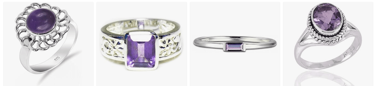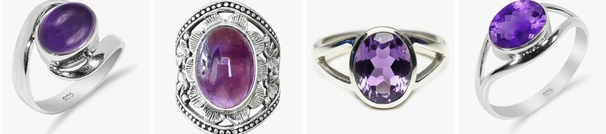 - Amethyst Gemstone: A stunning oval-cut amethyst gemstone, known for its rich purple color, set in a high-quality sterling silver band