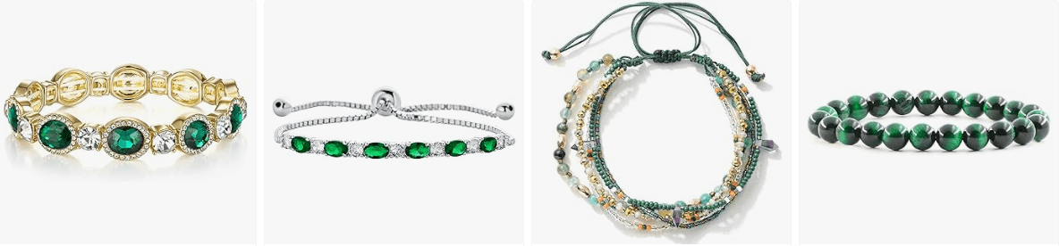 - [Versatile from Day to Night] Transition effortlessly from casual daytime looks to evening glamour. The emerald-green crystals evoke spring gardens, making this May birthstone bracelet a meaningful gift for birthdays, anniversaries, or Mother’s Day. Pair with minimalist rings or let it shine solo as a statement piece