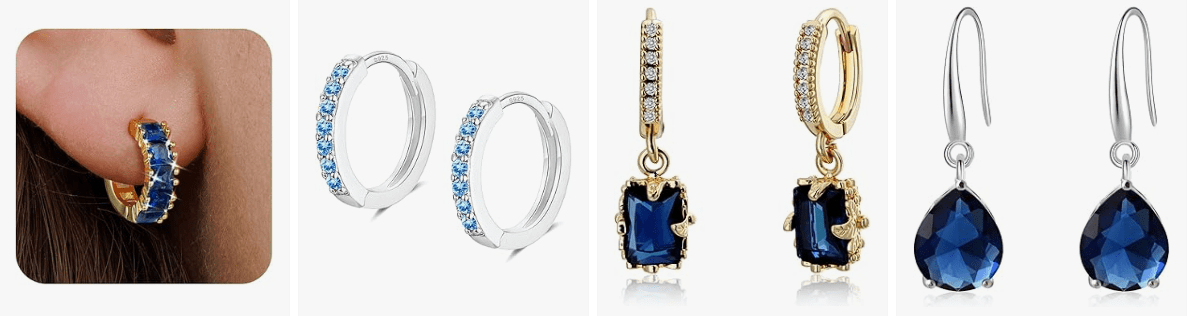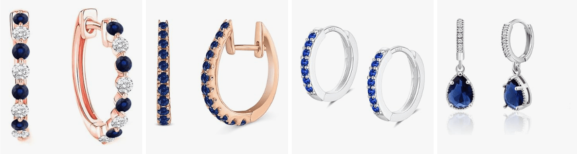 From delicate minimalist hoops with tiny sapphire accents to bold statement designs featuring multiple gemstones, there’s a style to suit every personality. Some designs highlight sterling silver settings for a cool modern vibe, while others feature gold tones for a warmer, more romantic finish.