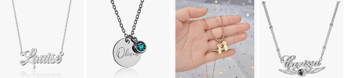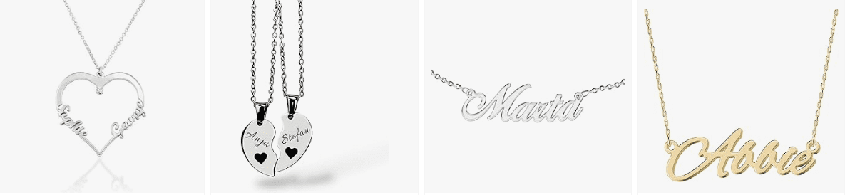 - Personalized Name Necklace: A custom name necklace lets you showcase your identity or someone special's name, making it a sentimental keepsake to cherish daily