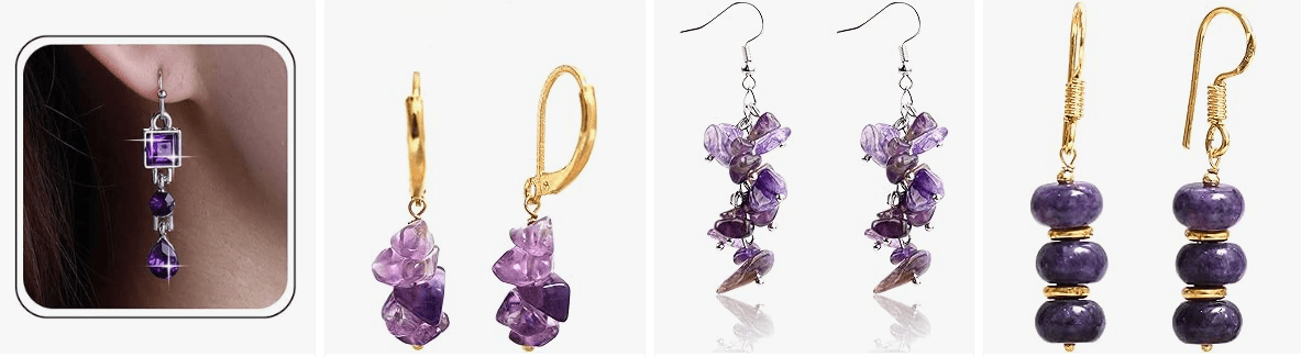 When used in hoop earrings, amethyst stones catch the light beautifully and create a striking contrast against silver or gold settings. Whether worn with casual outfits or elegant holiday attire, these earrings add a touch of charm and personality.