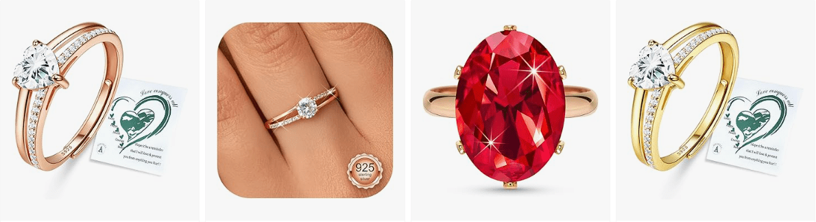 • Cubic Zirconia Rings for Women: These oval-shaped gemstone rings are a sight to behold, offering a unique and eye-catching design. The giant imitation diamond centerpiece instantly draws attention with its dazzling sparkle, making it a true showstopper.