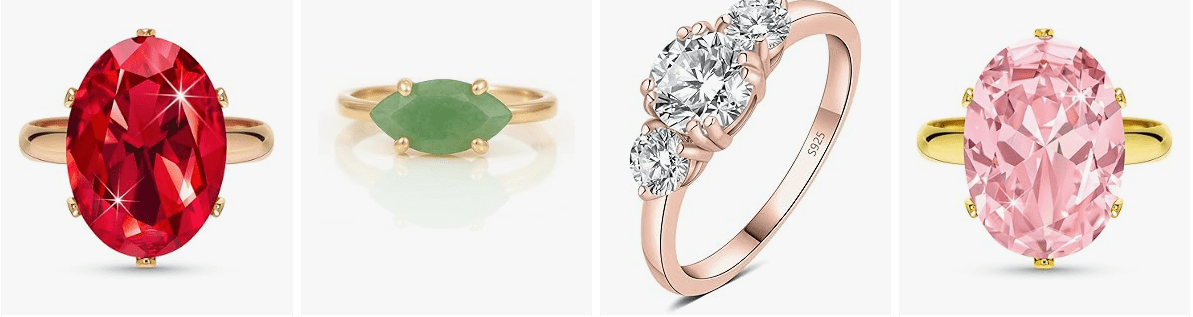 • Eye-catching gemstones: From blush pink stones to vibrant crystals, each ring shines beautifully.