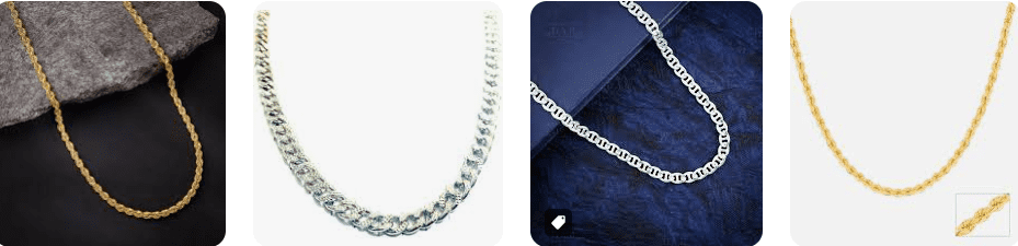 - Gold Chains: Ideal for warm skin tones, gold adds luxury and richness. It stands out in evening lighting and looks spectacular with darker attire.