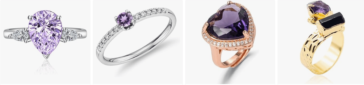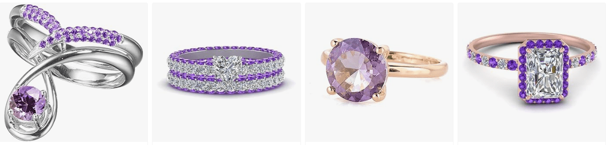 - √STATEMENT ENGAGEMENT ANNIVERSARY RINGS FOR HER: If class is what you look to exhibit with your choice of outfit, then the Class Crown ring is what you need. This Princess Diana Kate Middleton ring with an exotic birthstone from genuine purple amethyst is your best bet at charming all those that admire you. The genuine purple amethyst ring will make all your outfit look elegant and classy.